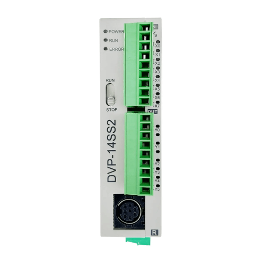 CLP (Controlador Lógico Programável) Fabricante: DELTA Modelo: DVP14SS211R Linha: DVP-SS2 Slim Tensão: 24V DC; Entradas Digitais (Di): 08; Saídas Digitais (Do): 06; Método de Saída: Relé; Portas de Comunicação: RS232 e RS485; Protocolo: Modbus ASCII/RTU, podendo operar como mestre ou escravo. O CLP compacto DVP-SS2 da Delta utiliza o software de programação